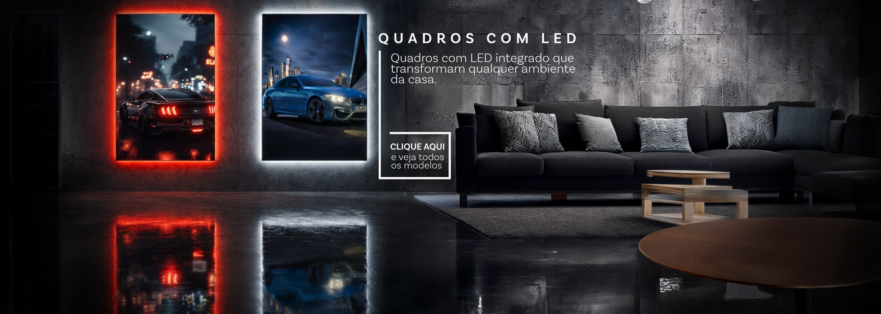Com artes exclusivas de supercarros e clássicos icônicos, nossas peças contam com iluminação LED integrada, impressão de alta qualidade e acabamento em acrílico, garantindo profundidade, brilho e sofisticação.